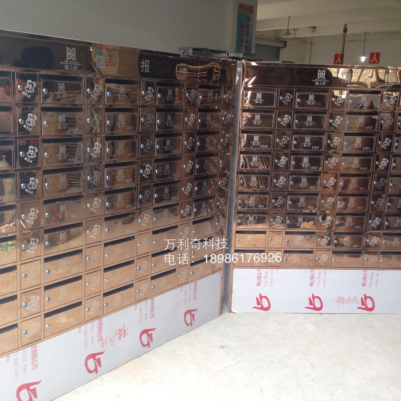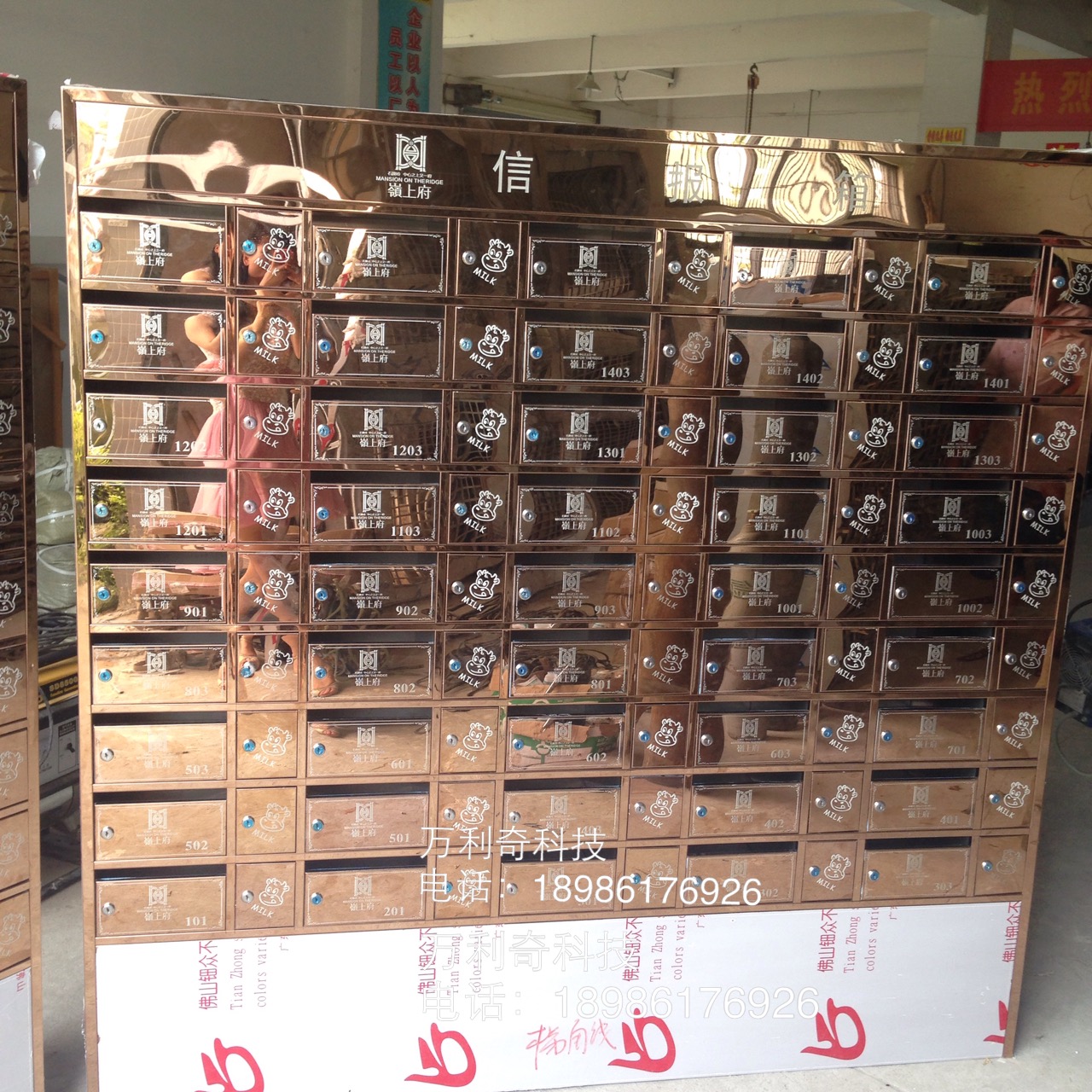 嶺上府玫瑰金奶报箱、智能信报箱、不锈钢信报